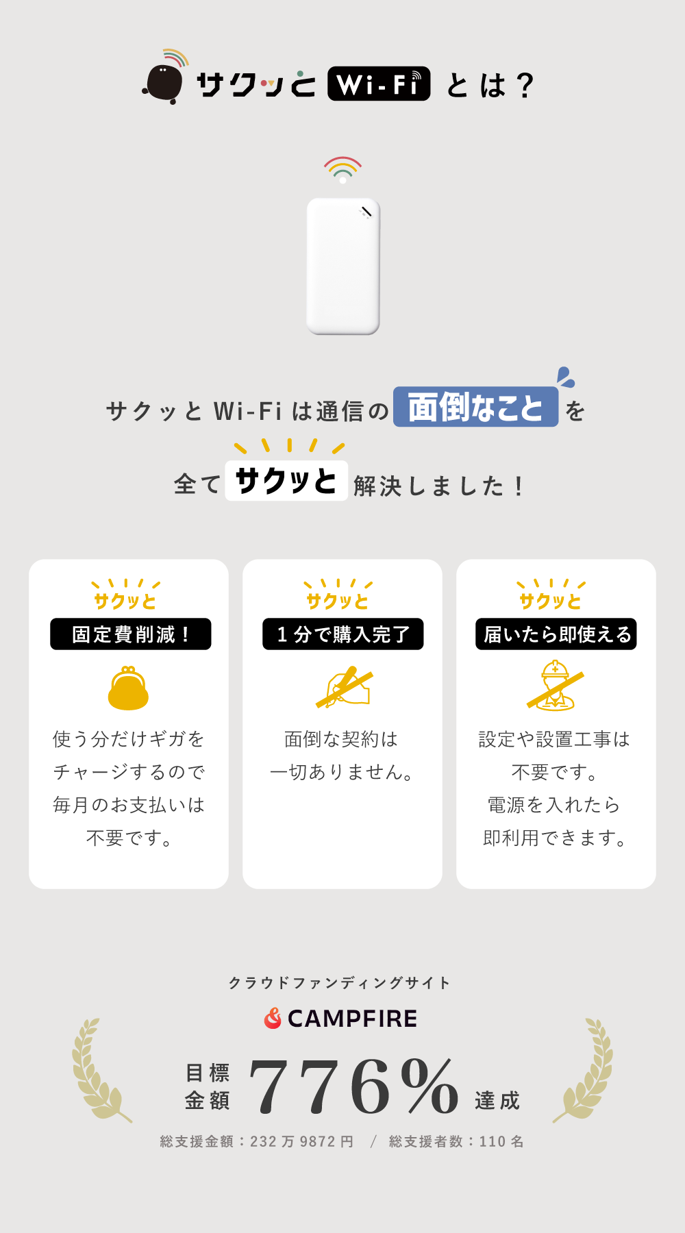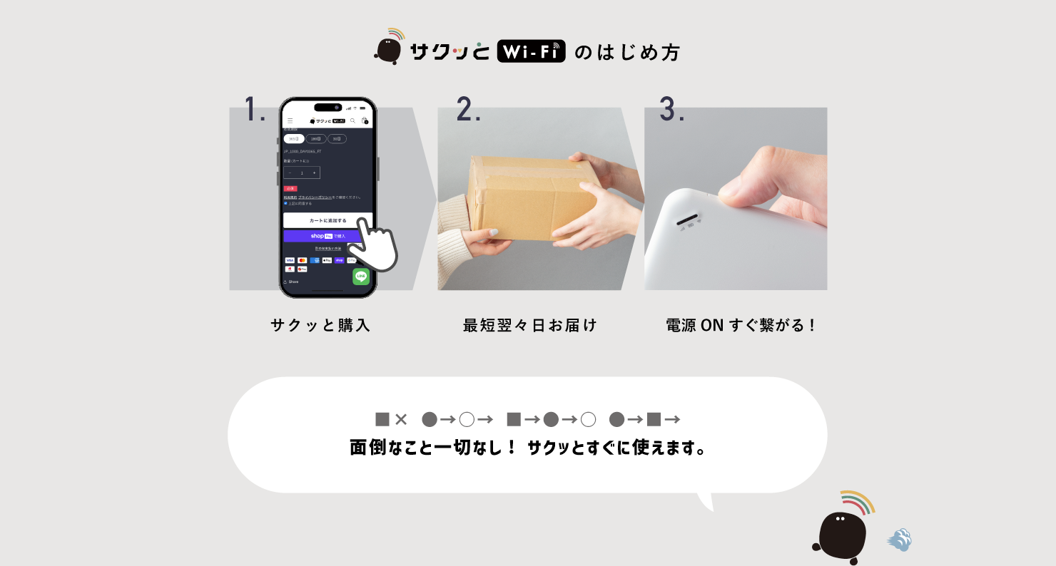 ご契約は不要で、Wi-Fi端末が到着次第すぐにご利用いただけます。