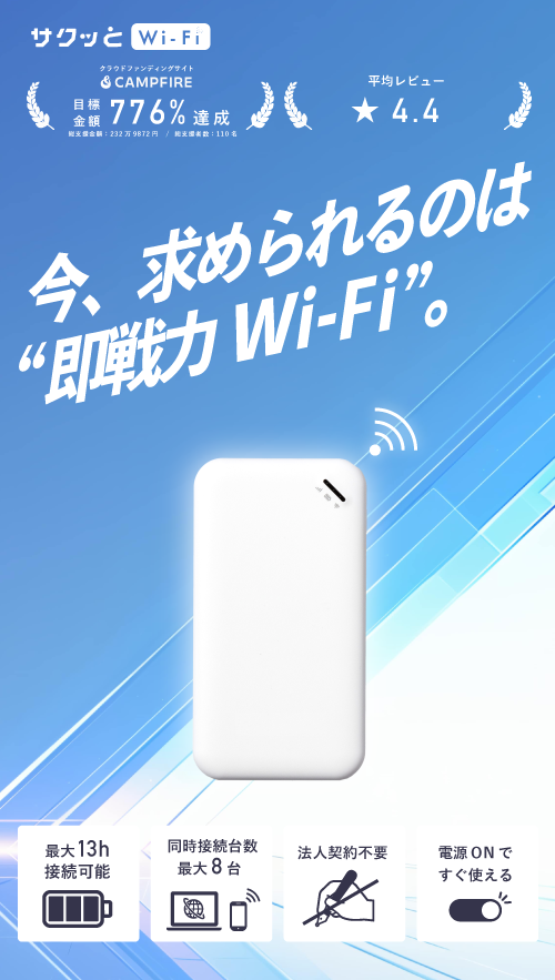 ご契約は不要で、Wi-Fi端末が到着次第すぐにご利用いただけます。