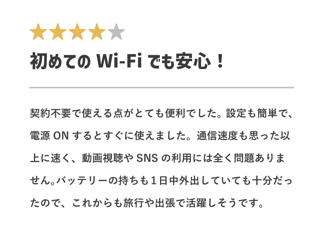 ご契約は不要で、Wi-Fi端末が到着次第すぐにご利用いただけます。