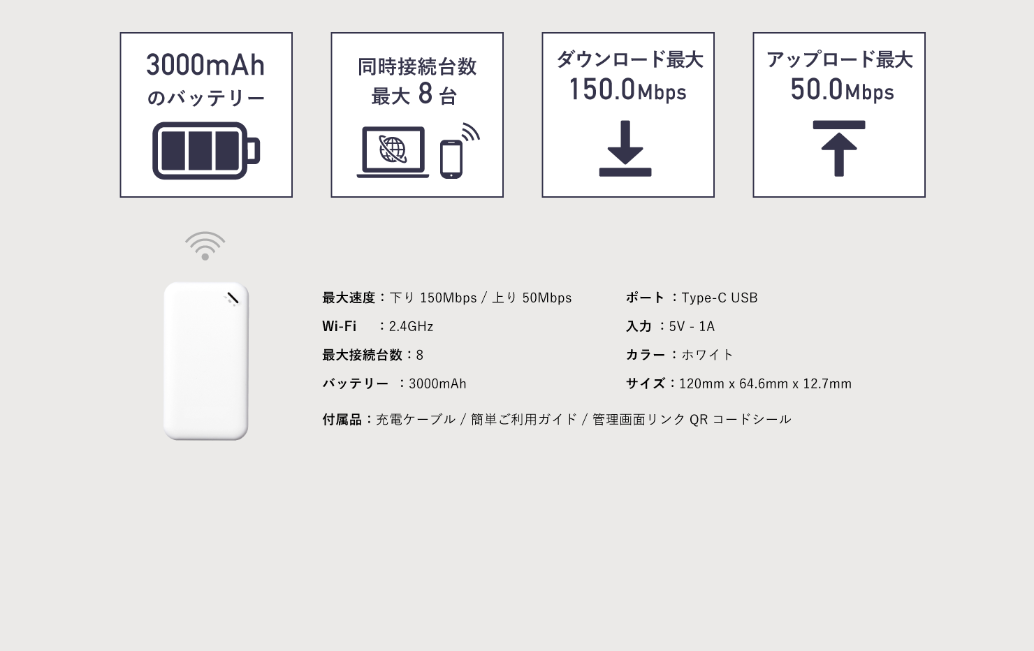 通信速度の理論値は、ダウンロード最大150Mbps、アップロード最大50Mbpsです。